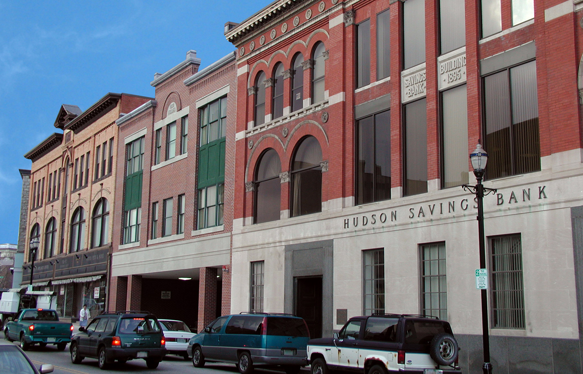 Located at the center of the Historic District of Hudson, this branch bank and offices were built directly above the existing parking area to preserve the architectural fabric of the street.