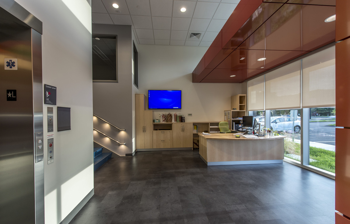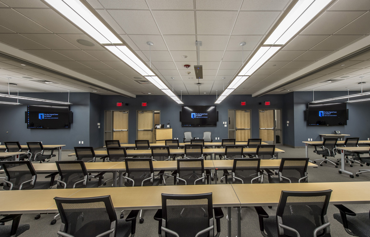The state-of-the-art research and curriculum development center houses the Autism Curriculum Encyclopedia, 10 research rooms, a model classroom, and multiple group observation rooms, as well as an exterior enclosed courtyard. A 2nd story exterior patio, resource room, and break room were all provided for employees.