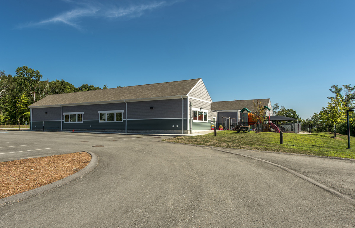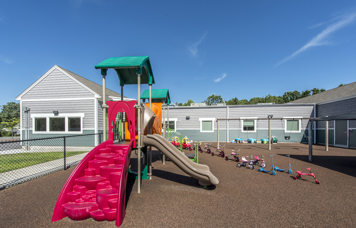 A daycare building and playground for 100 children of staff working at the main building. 8 classrooms, a play room, office, and an exterior playground.